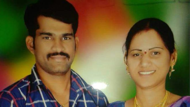 Image captionSwati Reddy (kulia) na mpenzi wake wanadaiwa kumuua mume wake Sudhakar (kushoto) mwezi uliopita